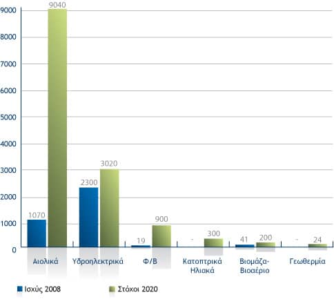 Η ανάπτυξη του τομέα ΑΠΕ στην Ελλάδα διασφαλίζεται από συμβατικά δεσμευτικούς στόχους που απαιτούν τη συμμετοχή των ΑΠΕ με ποσοστό 29% μέχρι το 2020, από την τρέχουσα συμμετοχή του 10% . Επιπλέον, απαιτείται το 10% των σημερινών συμβατικών καυσίμων να αντικατασταθεί με βιοκαύσιμα μέχρι το 2020.